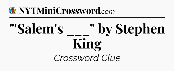 The clue “”‘Salem’s ___” by Stephen King” most recently appeared in a Daily Pop Plus Crossword on May 25, 2024.