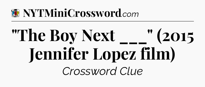 The clue “”The Boy Next ___” (2015 Jennifer Lopez film)” most recently appeared in a Daily Pop Plus Crossword on May 26, 2025.