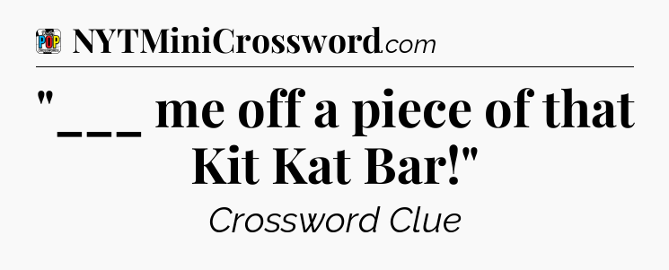 The clue “”___ me off a piece of that Kit Kat Bar!”” most recently appeared in a Daily Pop Plus Crossword on May 28, 2024.