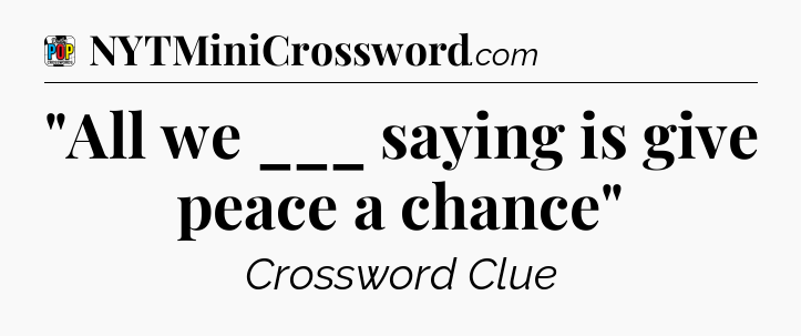 The clue “”All we ___ saying is give peace a chance”” most recently appeared in a Daily Pop Plus Crossword on May 28, 2025.