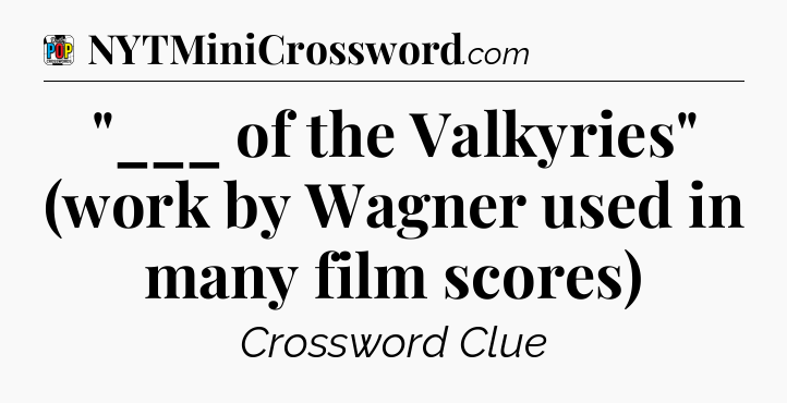 There is 1 possible answer for the crossword clue “”___ of the Valkyries” (work by Wagner used in many film scores)”.