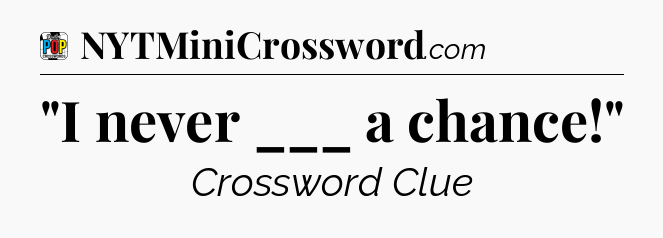 The clue “”I never ___ a chance!”” most recently appeared in a Daily Pop Plus Crossword on May 5, 2024.
