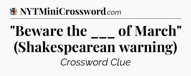 The clue “”Beware the ___ of March” (Shakespearean warning)” most recently appeared in a Daily Pop Plus Crossword on May 9, 2024.