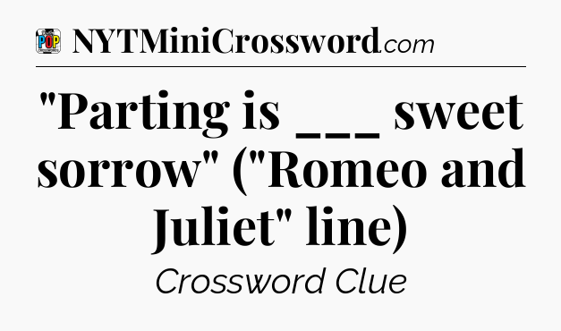 The clue “”Parting is ___ sweet sorrow” (“Romeo and Juliet” line)” most recently appeared in a Daily Pop Plus Crossword on June 11, 2024.