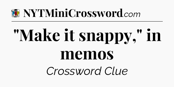 There is 1 possible answer for the crossword clue “”Make it snappy,” in memos”.
