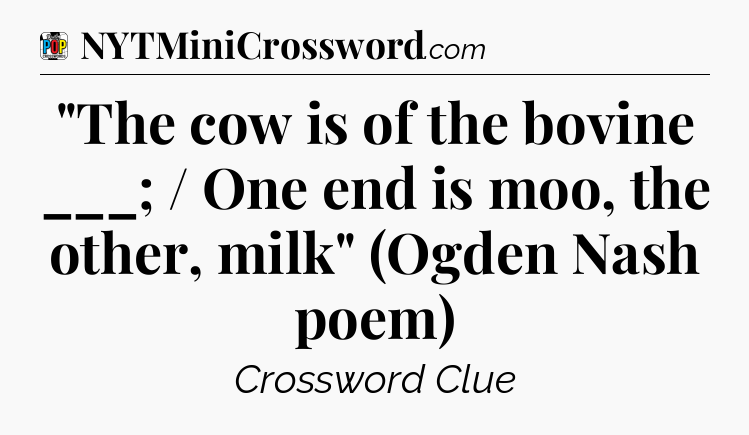 The clue “”The cow is of the bovine ___; / One end is moo, the other, milk” (Ogden Nash poem)” most recently appeared in a Daily Pop Plus Crossword on June 17, 2025.