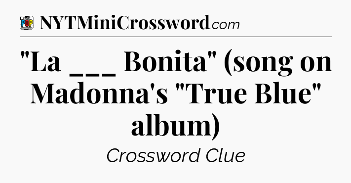 The clue “”La ___ Bonita” (song on Madonna’s “True Blue” album)” most recently appeared in a Daily Pop Plus Crossword on June 18, 2024.