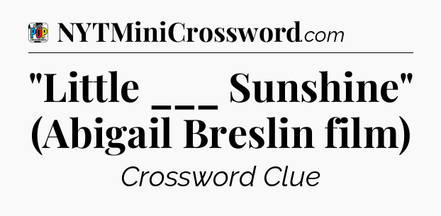 The clue “”Little ___ Sunshine” (Abigail Breslin film)” most recently appeared in a Daily Pop Plus Crossword on June 2, 2025.