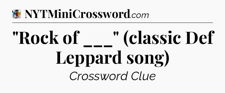 The clue “”Rock of ___” (classic Def Leppard song)” most recently appeared in a Daily Pop Plus Crossword on June 2, 2025.