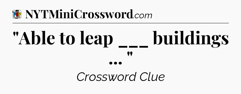 What is the answer to the clue “”Able to leap ___ buildings … “”?