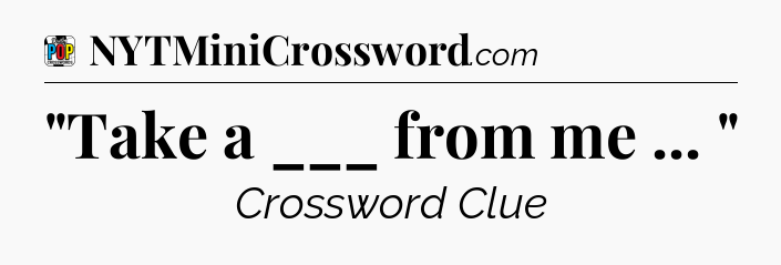 If you landed on this webpage, you definitely need some help with Daily Pop Crossword. This simple page contains the solution for ‘”Take a ___ from me … “‘ crossword clue. Scroll down and see the answer to this hint!
