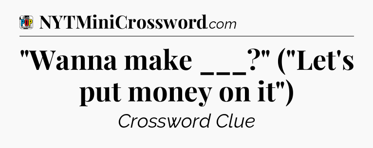 The clue “”Wanna make ___?” (“Let’s put money on it”)” most recently appeared in a Daily Pop Plus Crossword on June 29, 2025.