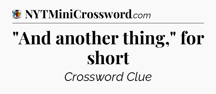 The clue “”And another thing,” for short” most recently appeared in a Daily Pop Plus Crossword on June 4, 2025.