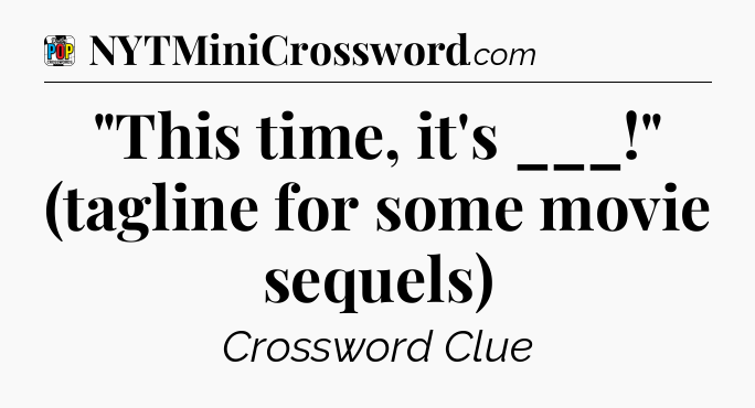 The clue “”This time, it’s ___!” (tagline for some movie sequels)” most recently appeared in a Daily Pop Plus Crossword on June 6, 2024.