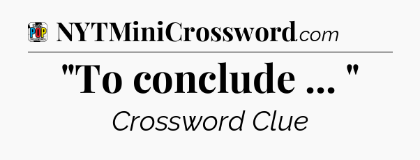The clue “”To conclude … “” most recently appeared in a Daily Pop Plus Crossword on June 9, 2024.