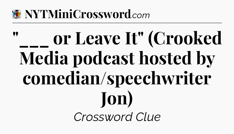 The clue “”___ or Leave It” (Crooked Media podcast hosted by comedian/speechwriter Jon)” most recently appeared in a Daily Pop Plus Crossword on July 11, 2024.