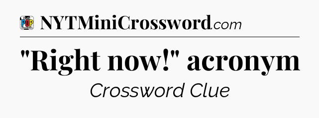 The clue “”Right now!” acronym” most recently appeared in a Daily Pop Plus Crossword on July 11, 2025.