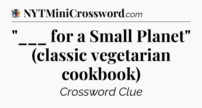 The clue “”___ for a Small Planet” (classic vegetarian cookbook)” most recently appeared in a Daily Pop Plus Crossword on July 17, 2025.