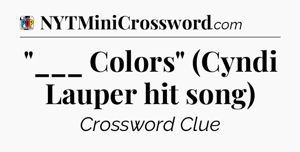 The clue “”___ Colors” (Cyndi Lauper hit song)” most recently appeared in a Daily Pop Plus Crossword on July 18, 2025.