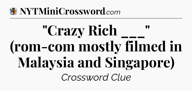 The clue “”Crazy Rich ___” (rom-com mostly filmed in Malaysia and Singapore)” most recently appeared in a Daily Pop Plus Crossword on July 21, 2024.