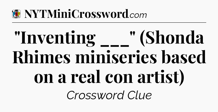 The clue “”Inventing ___” (Shonda Rhimes miniseries based on a real con artist)” most recently appeared in a Daily Pop Plus Crossword on July 23, 2024.