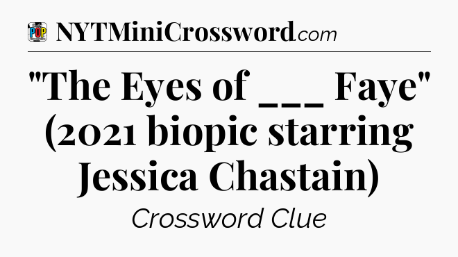 The clue “”The Eyes of ___ Faye” (2021 biopic starring Jessica Chastain)” most recently appeared in a Daily Pop Plus Crossword on July 23, 2024.