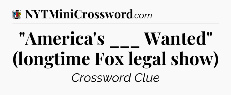 The clue “”America’s ___ Wanted” (longtime Fox legal show)” most recently appeared in a Daily Pop Plus Crossword on July 23, 2025.