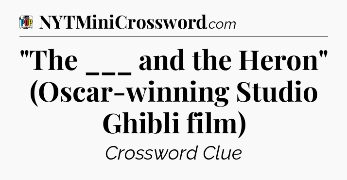 The clue “”The ___ and the Heron” (Oscar-winning Studio Ghibli film)” most recently appeared in a Daily Pop Plus Crossword on July 24, 2024.