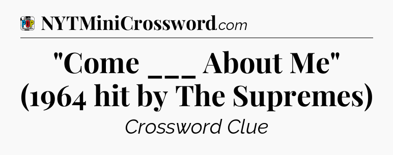 The clue “”Come ___ About Me” (1964 hit by The Supremes)” most recently appeared in a Daily Pop Plus Crossword on July 25, 2024.