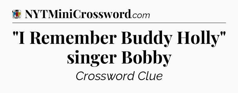 The clue “”I Remember Buddy Holly” singer Bobby” most recently appeared in a Daily Pop Plus Crossword on July 29, 2025.