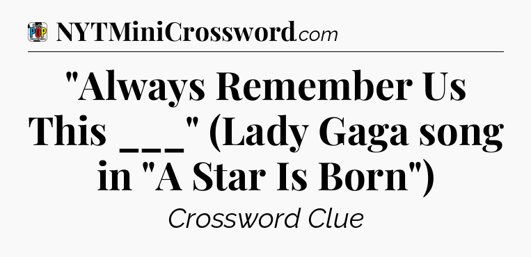 The clue “”Always Remember Us This ___” (Lady Gaga song in “A Star Is Born”)” most recently appeared in a Daily Pop Plus Crossword on August 10, 2025.