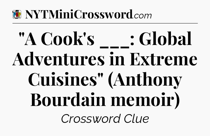 The clue “”A Cook’s ___: Global Adventures in Extreme Cuisines” (Anthony Bourdain memoir)” most recently appeared in a Daily Pop Plus Crossword on August 15, 2024.