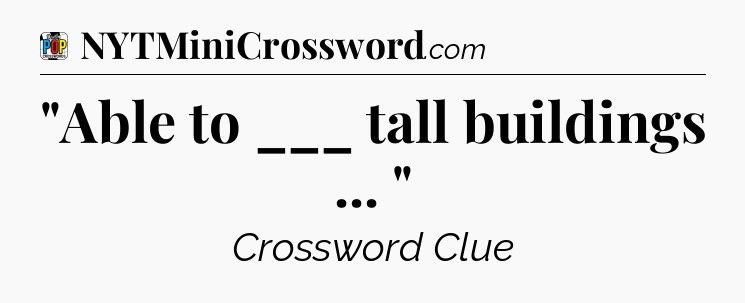 The clue “”Able to ___ tall buildings … “” most recently appeared in a Daily Pop Plus Crossword on August 16, 2025.