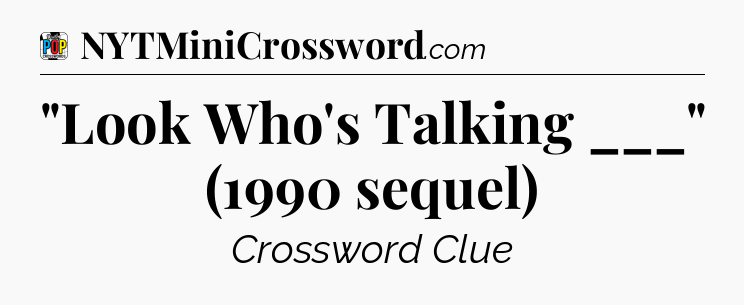 The clue “”Look Who’s Talking ___” (1990 sequel)” most recently appeared in a Daily Pop Plus Crossword on August 19, 2024.