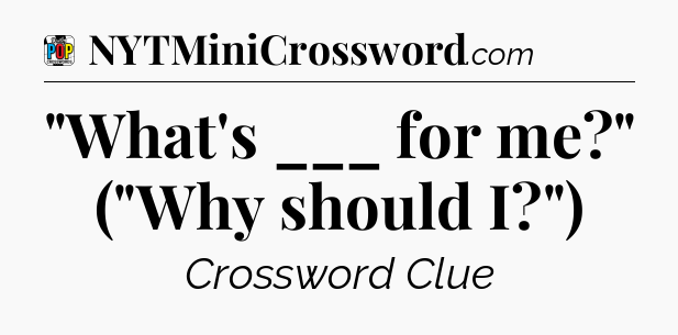The Answer for “What’s ___ for me?” (“Why should I?”) Crossword is: