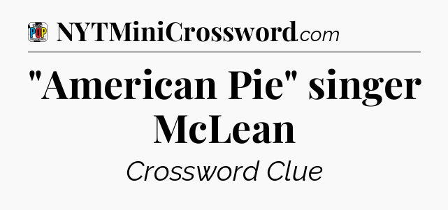 The clue “”American Pie” singer McLean” most recently appeared in a Daily Pop Plus Crossword on August 21, 2025.