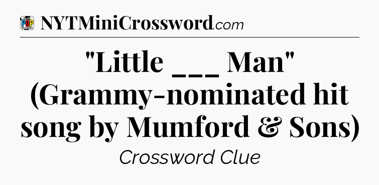 The clue “”Little ___ Man” (Grammy-nominated hit song by Mumford & Sons)” most recently appeared in a Daily Pop Plus Crossword on August 23, 2025.
