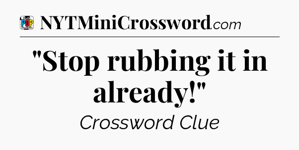 The clue “”Stop rubbing it in already!”” most recently appeared in a Daily Pop Plus Crossword on August 25, 2025.