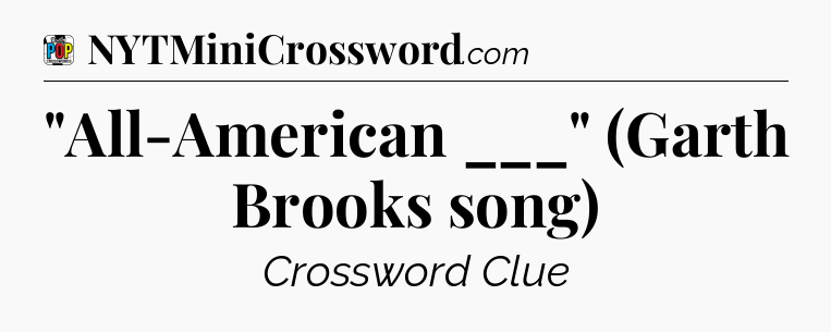 The clue “”All-American ___” (Garth Brooks song)” most recently appeared in a Daily Pop Plus Crossword on August 27, 2025.