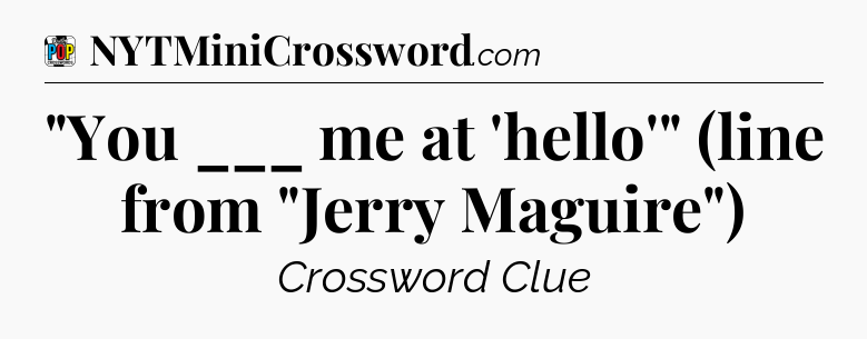 The clue “”You ___ me at ‘hello'” (line from “Jerry Maguire”)” most recently appeared in a Daily Pop Plus Crossword on August 29, 2024.