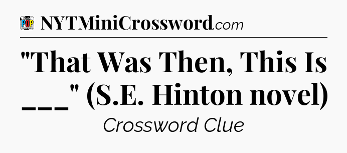The clue “”That Was Then, This Is ___” (S.E. Hinton novel)” most recently appeared in a Daily Pop Plus Crossword on August 6, 2025.