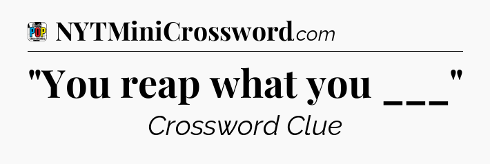 The clue “”You reap what you ___”” most recently appeared in a Daily Pop Plus Crossword on August 7, 2025.