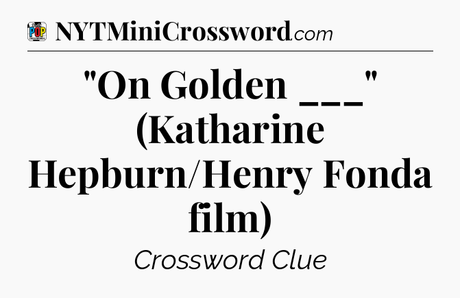 The clue “”On Golden ___” (Katharine Hepburn/Henry Fonda film)” most recently appeared in a Daily Pop Plus Crossword on September 12, 2024.