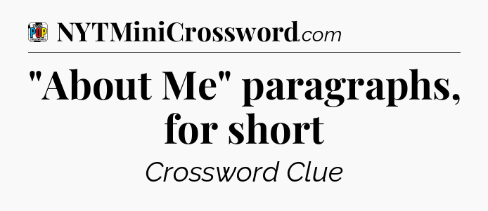 The clue “”About Me” paragraphs, for short” most recently appeared in a Daily Pop Plus Crossword on September 14, 2024.