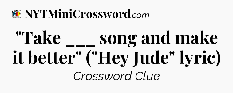 The clue “”Take ___ song and make it better” (“Hey Jude” lyric)” most recently appeared in a Daily Pop Plus Crossword on September 14, 2025.