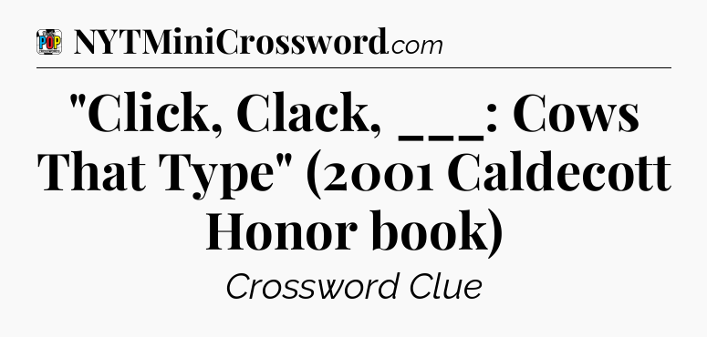 The correct answer to the crossword clue “”Click, Clack, ___: Cows That Type” (2001 Caldecott Honor book)” is MOO.