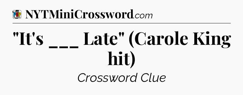The Answer for “It’s ___ Late” (Carole King hit) Crossword is: