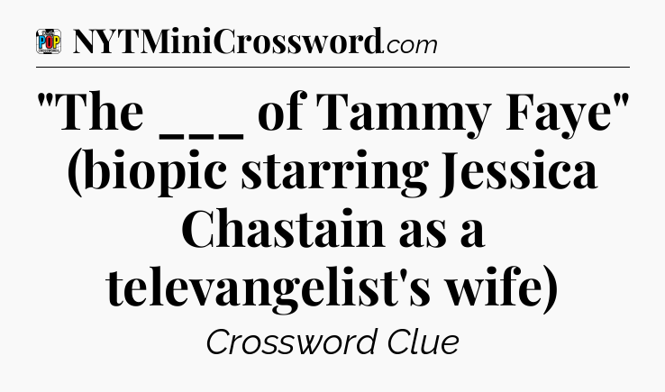 The clue “”The ___ of Tammy Faye” (biopic starring Jessica Chastain as a televangelist’s wife)” most recently appeared in a Daily Pop Plus Crossword on September 23, 2024.