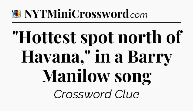The clue “”Hottest spot north of Havana,” in a Barry Manilow song” most recently appeared in a Daily Pop Plus Crossword on September 26, 2024.