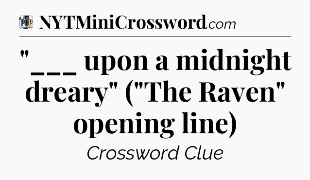 The Answer for “___ upon a midnight dreary” (“The Raven” opening line) Crossword is: